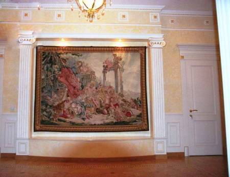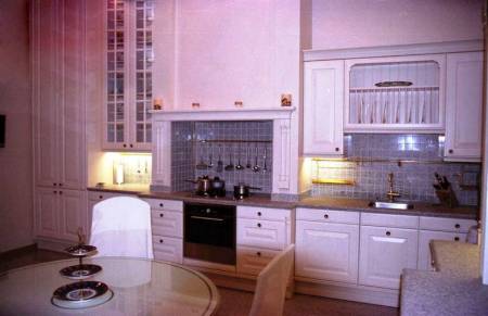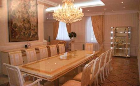 Дизайнерская мебель: Оак, Турри, производства Италия.Большой плавательный бассейн (18х6).Тепловая и водяная разводка - металлопластик.Окна - деревянные стеклопакеты.В доме работает климат-контроль.Отдельно на участке расположен гараж с квартирой для охраны (90 кв.м.). Описание дома: Цоколь - домашний кинотеатр, тренажерный зал, шубная, винная комната, винный погреб, санузел, постирочная, котельная. 1 этаж - прихожая, гардеробная, холл, большая гостиная с камином, кухня, бассейн, финская, турецкая бани, зона отдыха, 2 спальни, гостевой санузел, гараж на 2 автомобиля. 2 этаж - хозяйская зона: кабинет, спальня, 2 гардеробные, санузел; 2 детские спальни с игровыми комнатами, гардеробными и санузлами; музыкальная комната. 3 этаж - библиотека. Уровень отделки: Под ключ Коммуникации: центральные Вода: центральная Газ: магистральный Отопление: газовое Электричество: 50 кВт Канализация: центральная Связь: телефон, интернет, спутник и т.д. | |
