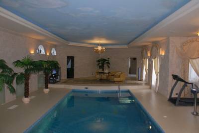 Описание дома: 1-й этаж: гостиная, кухня, камин, бассейн с ультразвуковой чисткой воды, хамам, бильярдная, с/у, выход на открытую террасу. 2-й этаж: 5 спален со своими с/у, гардеробная. На территории участка расположен теннисный корт, дом для охраны - персонала, кованая беседка в виде кареты. Это предложение только для настоящих ценителей роскоши и стиля. МКАД: 40 км Шоссе: Рублево - Успенское\Ильинское\Новорижское шоссе Площадь уч-ка: 35 сот. Площадь дома: 830 м2 Цена: 4.500.000€ . tel:+34 651020098 | |